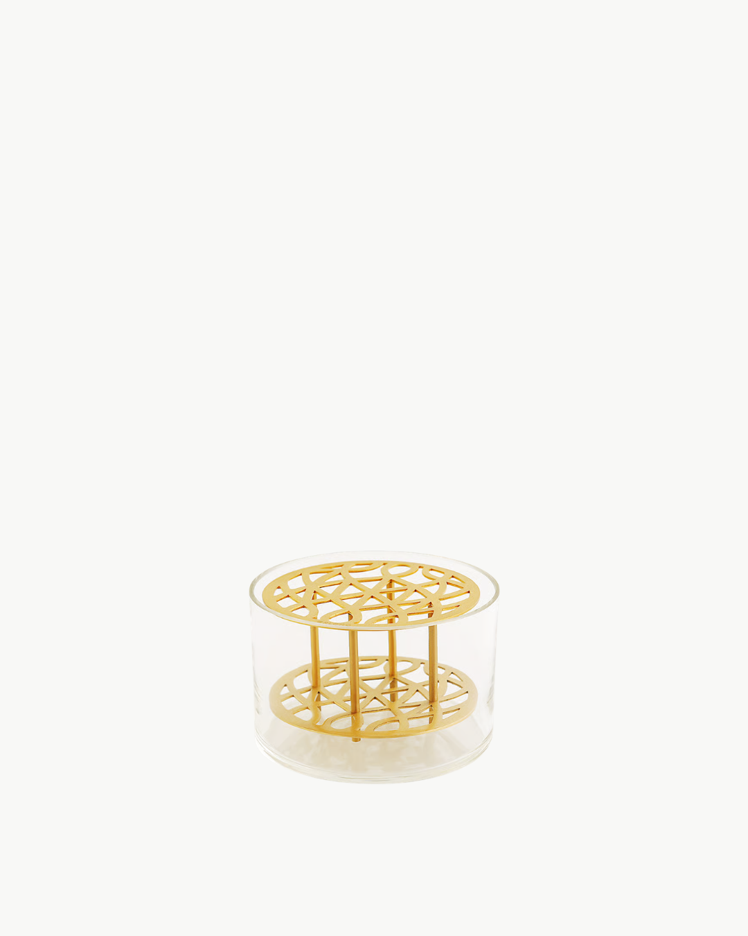 Äng vase, stor fra KLONG er en elegant vase fra Äng-kolleksjonen designet av Eva Schildt. Den håndlagde metallstativet fungerer som en innebygd blomsterstøtte og gir snittblomstene dine støtte og vakker struktur. Hver vase får et unikt uttrykk da mønsteret er formet for hånd, noe som gjør hvert eksemplar spesielt sjarmerende. Messingen er lakkert for å tåle vann — rengjør grundig for planteesaft og skift blomstevannet ofte for å bevare finishen. Perfekt for den som vil løfte blomstene til en varm, skandinavisk detalj i hjemmet.