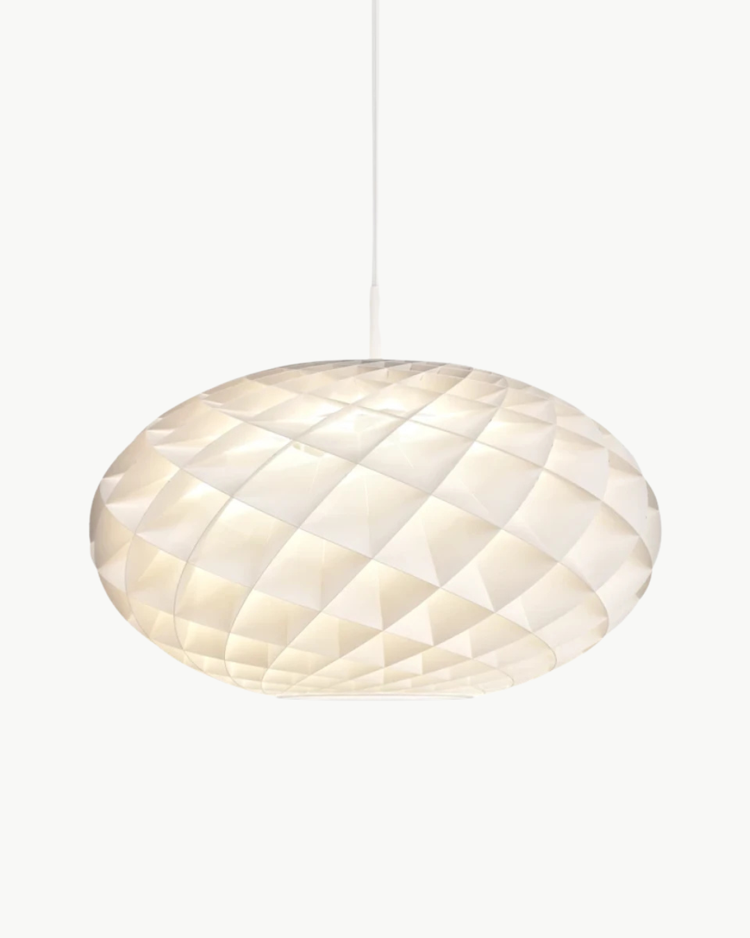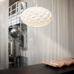 Armaturen gir et nedadrettet mykt og komfortabelt lys. Den kjegleformede fasongen og den matte, hvitlakkerte innsiden bidrar til spredning av lyset. Åpningen i toppen av armaturen gir en dekorativ egen opplysning av buen øverst og gjør at armaturen visuelt beholder hele sin form både i tent og slukket tilstand.