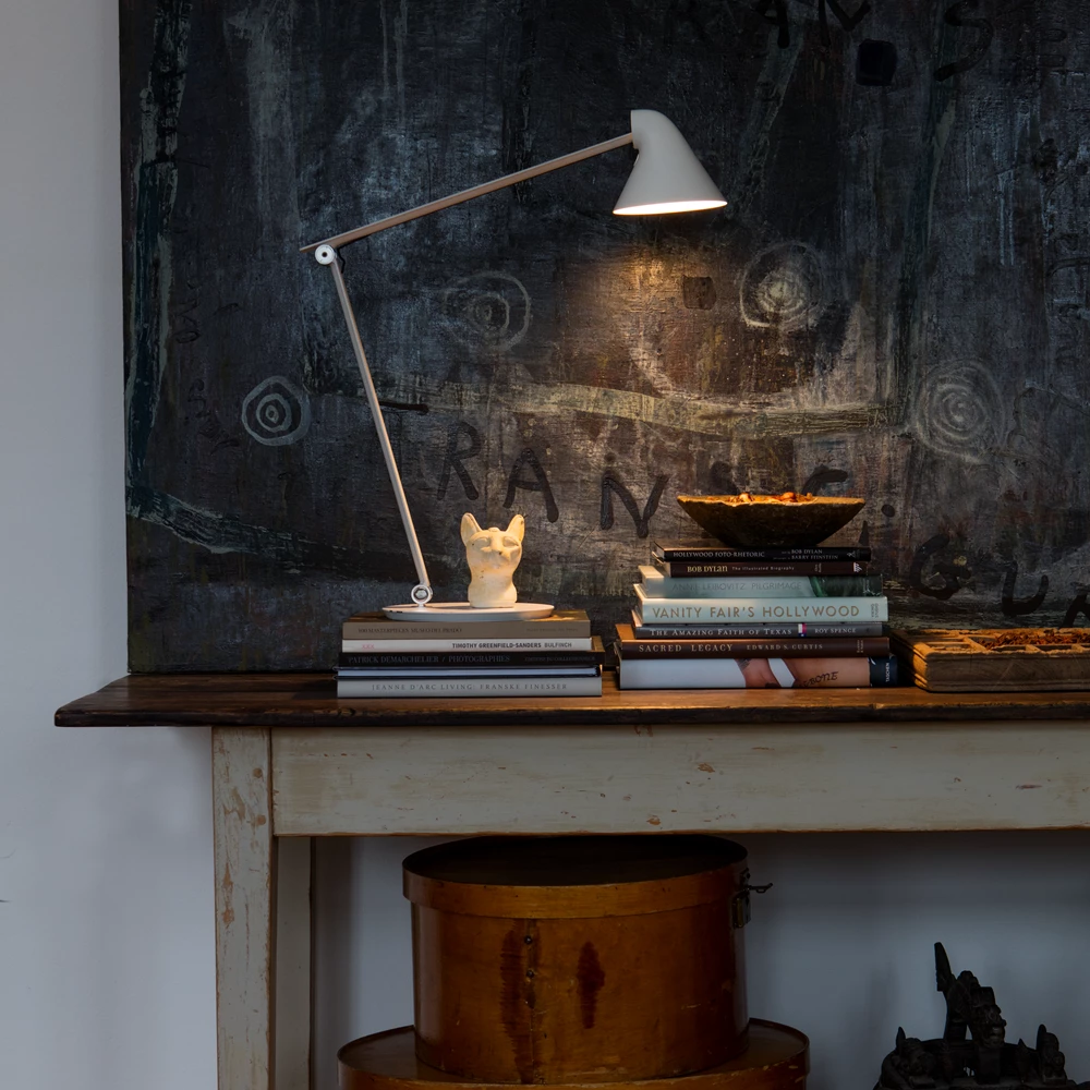 Bordlampen NJP designet av det Japanske design studioet Nendo for Louis Poulsen i 2015. En elegant minimalistisk og stilren lampe, med organiske og innovative detaljer.