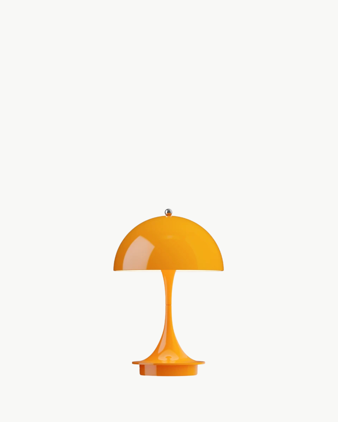 Panthella er én av Verner Pantons mest betydningsfulle design, og gjenspeiler den danske arkitektens storslåtte personlighet. Han ønsket å skape en organisk formet lampe som gir 100 % blendefritt lys, der både stativet og skjermen fungerer som lysreflektorer. Panton lyktes med å lage lampen Panthella i samarbeid med Louis Poulsen i 1971. Lampens karakteristiske form og evne til å reflektere mykt lys fra den trompetformede sokkelen har vært med på å gi den status som et designikon. Lampen Panthella 160 Portable er en nedskalert versjon av den opprinnelige designen. Lampen er kun 160 mm i diameter, noe som gjør den perfekt for å ta med seg både innendørs og utendørs for å skape en flott stemning. Dette er en ny farge lansert 1. mai 2025.