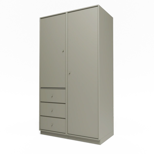 Montana Attire III er et funksjonelt og stilrent garderobeskap som kombinerer praktisk oppbevaring med moderne dansk design. Konfigurasjonen består av to døre og tre romslige skuffer, noe som gir en fleksibel løsning for både klær, tilbehør og annet du ønsker å organisere.