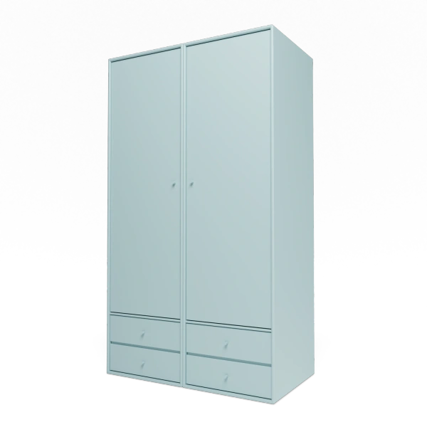 Montana Attire IV er et funksjonelt og stilrent garderobeskap som kombinerer praktisk oppbevaring med moderne dansk design. Konfigurasjonen består av to døre og fire romslige skuffer, noe som gir en fleksibel løsning for både klær, tilbehør og annet du ønsker å organisere.