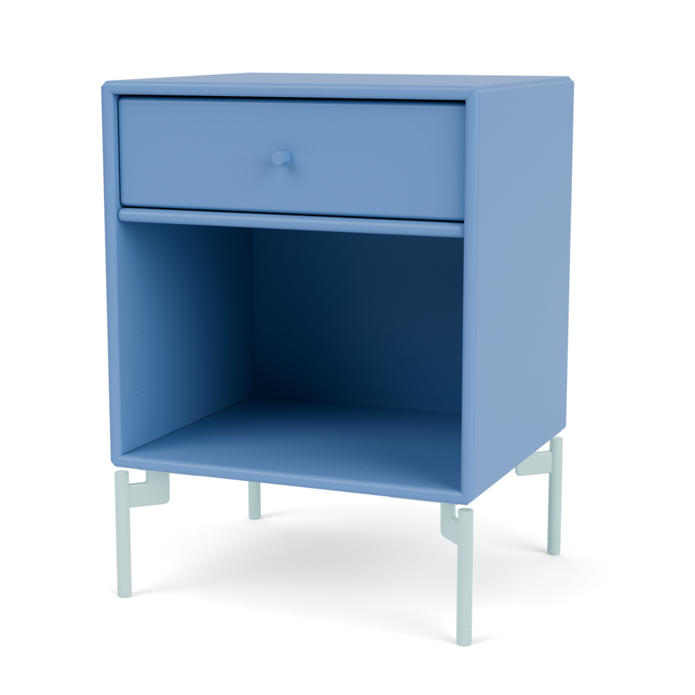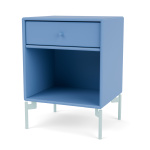 Trenger du et elegant og funksjonelt nattbord? DREAM er det lille nattbordet som står ved siden av deg når du sovner og våkner. Nattbordet består av én skuff og én hylle som gjør det ideelt som nattbord på soverommet for bøker, et glass vann, glass eller vekkerklokken. DREAM kan også brukes som fleksibelt sidebord i stuen eller gangen. DREAM er tilgjengelig med opphengsskinner, sokkel (3 eller 7 cm), ben og hjul. Velg mellom 41 Montana lakkfarger.