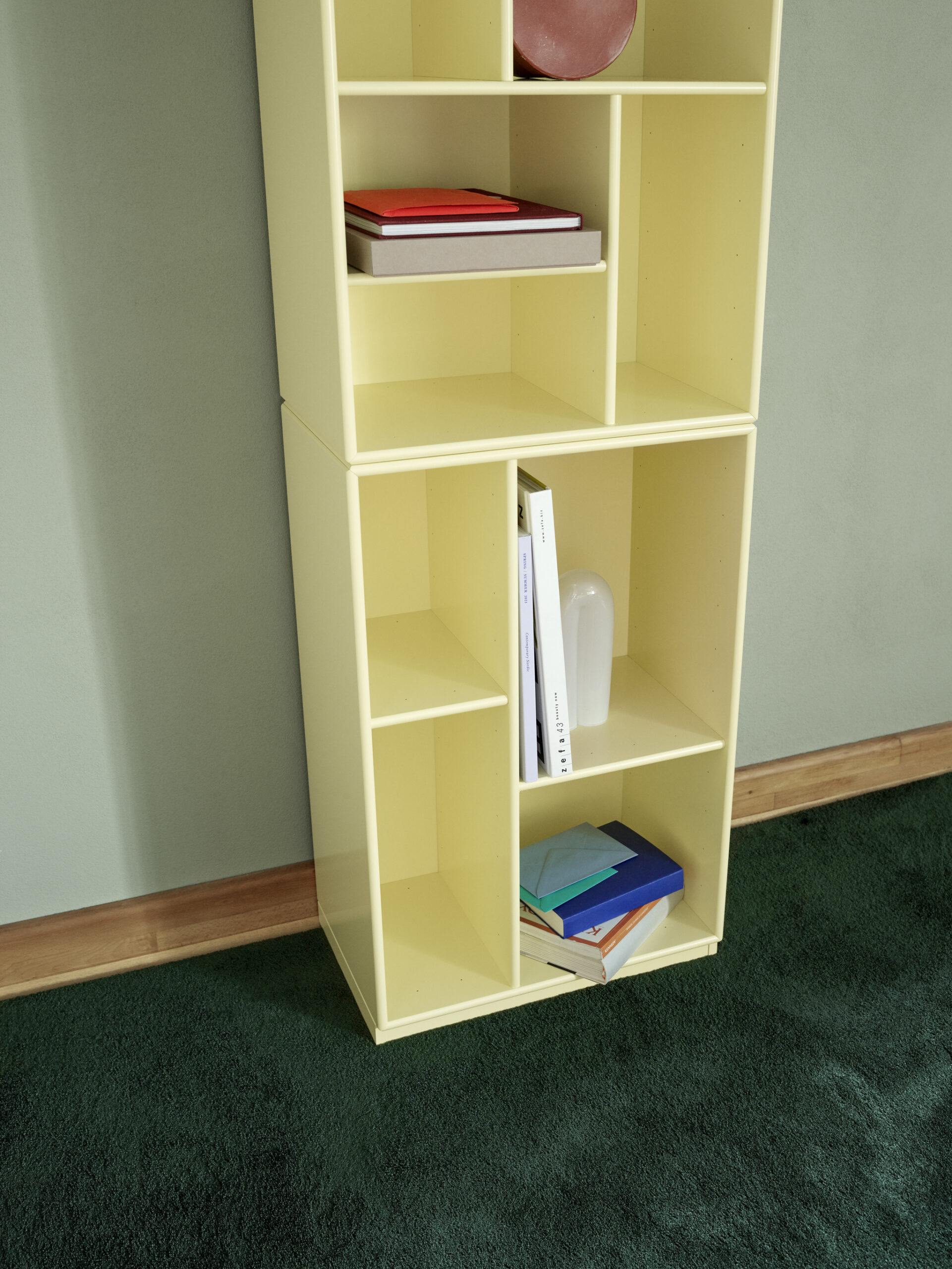 LOOM er en slank bokhylle som gir deg en rekke forskjellige alternativer for å oppbevare bøker og andre ting i stuen eller hjemmekontoret. LOOM har mange forskjellige oppbevaringsrom i ulike størrelser som gir en perfekt løsning for utstilling av gjenstander på en sofistikert måte. LOOMs slanke design gjør det mulig å passe både mindre og større rom. LOOM er tilgjengelig med opphengsskinner eller sokkel (3 eller 7 cm). Velg mellom 41 Montana lakkfarger.