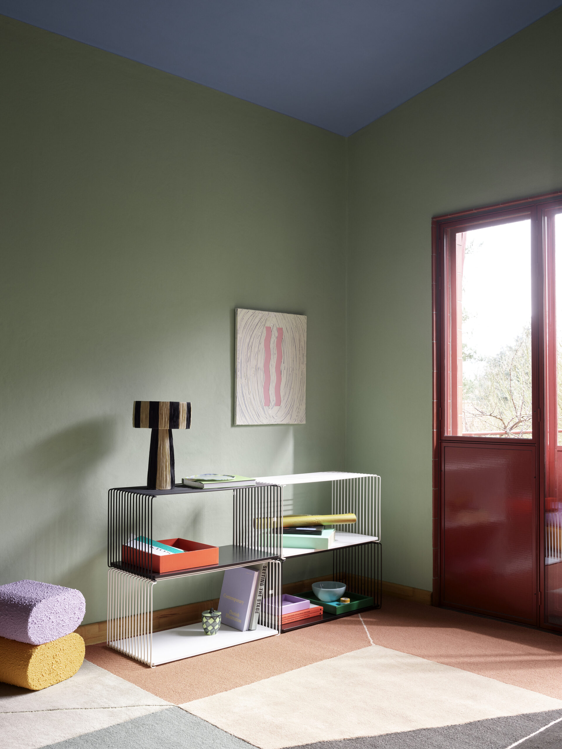 Panton Wire-systemet er alltid blitt hyllet for sin balanse mellom enkelhet og eleganse. Nå tar Panton Wire nok et skritt fremover med gjennomtenkte oppdateringer som forbedrer systemets allsidighet og estetiske appell. Panton Wire introduserer en ny kompakt modulstørrelse, perfekt for mindre rom eller som en optimalisert størrelse for et veggmontert nattbord. For dem som ønsker større design, tilbyr kolleksjonen nå en ny dybde i alle modulstørrelser, noe som muliggjør mer stabile og utvidede konfigurasjoner. Essensen til Verner Panton får nytt liv gjennom to slående nye farger. Black Red, en dyp og moderne nyanse, tilfører en raffinert, men klassisk brodd, mens Rosehip, en lys og livlig rødnyanse, leverer en iøynefallende fargeklatt. Begge nyanser er tilgjengelige i alle moduler, i tillegg til de koordinerte toppanelene og innleggshyllene, noe som gir uendelige muligheter for personlig tilpasning av rommet.