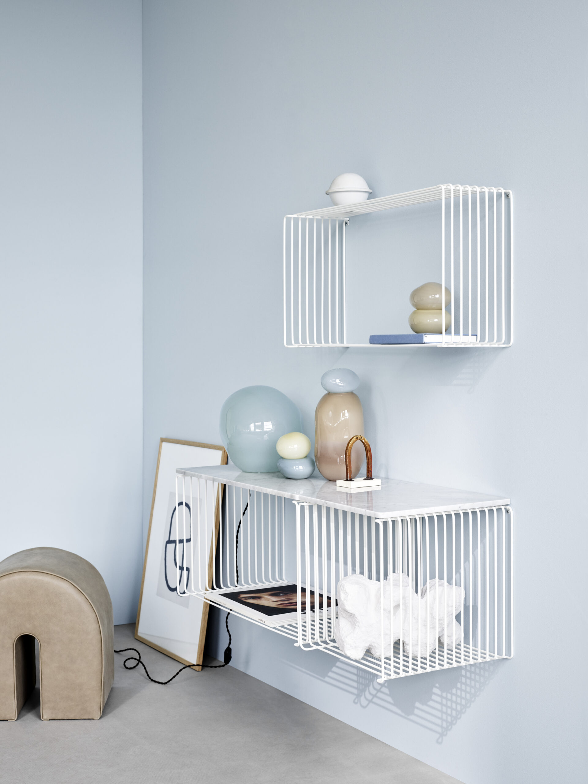 Designet av Verner Panton i 1971, har Panton Wire dukket opp igjen som et design samleobjekt med nye elementer og topper lagt til det fleksible systemet. Rå, men elegant, lett, men industriell, Panton Wire-enheten kan brukes individuelt eller i kombinasjon – på gulvet, hengende på veggen, stablet eller som romdeler.