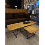 Begge bordene er i naturoljet eik (heltre) og svartlakkert understell.