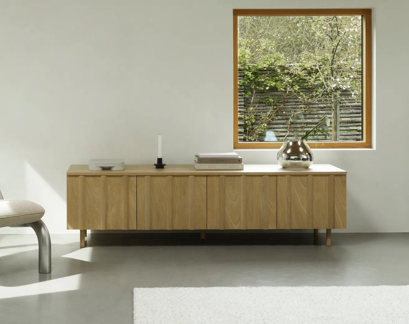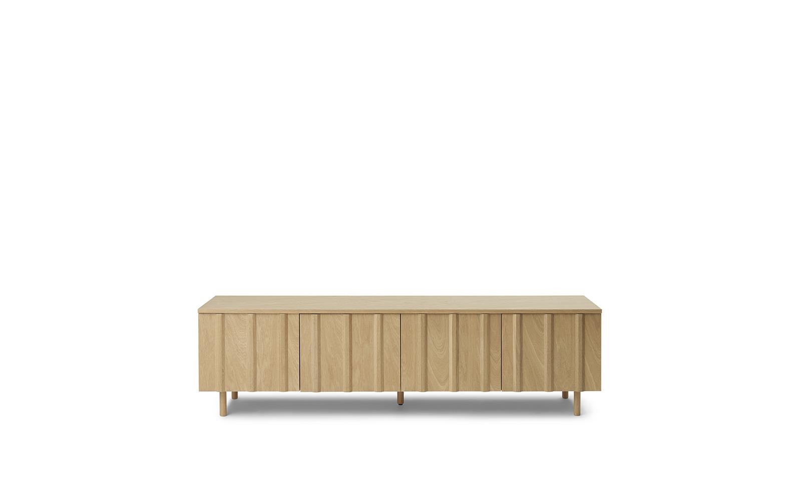 Rib-skjenken er en tidløs og elegant oppbevaringsløsning som er tilgjengelig i enten lakkert eikefiner eller malt og lakkert eikefiner.