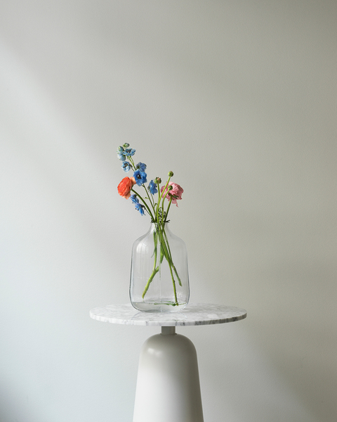 Formen på step-vasene ble bygget opp trinn for trinn av flere horisontale lag, og det er inntrykket av disse mange lagene som har skapt den vakre overflateteksturen til de endelige vasene. Myke og frie silhuetter motbalanserer de rette linjene i mønsteret og balanserer uttrykket. Siden formen ikke er symmetrisk rund, endrer vasene karakter avhengig av vinkelen de vises fra.