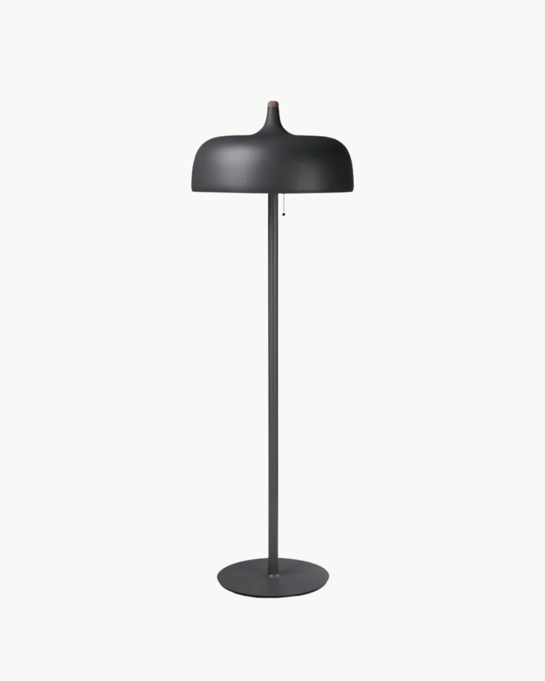 Tilgjengelig i hvit, mørkegrå og svart finish, har Acorn gulvlampen varme bøk- og valnøttdetaljer på aluminiumsskjermen sammen med en pen trekkbryter. Strømkabelen er også skjult i en ren silkeledning.