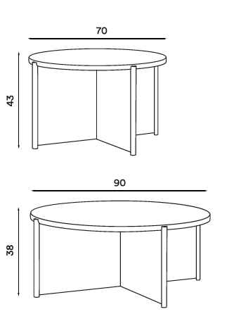 Mål (cm): Ø70 / H43 cm – Ø90 / H38 cm