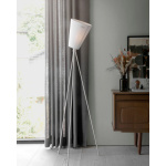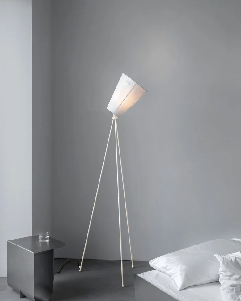 Oslo Wood gulvlampe fra Northern. Oslo Wood er en studiolampe med et tredelt benstativ. Skjermen, som har over 2000 silketråder svøpt for hånd, kan vinkles. Lampen gir et oppadrettet fast lys og en indirekte lyseffekt via trådene i skjermen som gir et varmt og diffust lys. Oslo Wood sprer lys på samme måte som man kan oppleve i skogene rundt Oslo. Lys strålene blir diffuse når de passerer gjennom skjermen, som konturene av byen som lyser opp himmelen en mørk vinternatt. Det er som om lyset filtreres gjennom trærne, i lampen filtreres lyset gjennom trådene i skjermen. Den oppadrettede belysningen i Oslo Wood gir sterkere konturer av lys enn de som når over tretoppene.