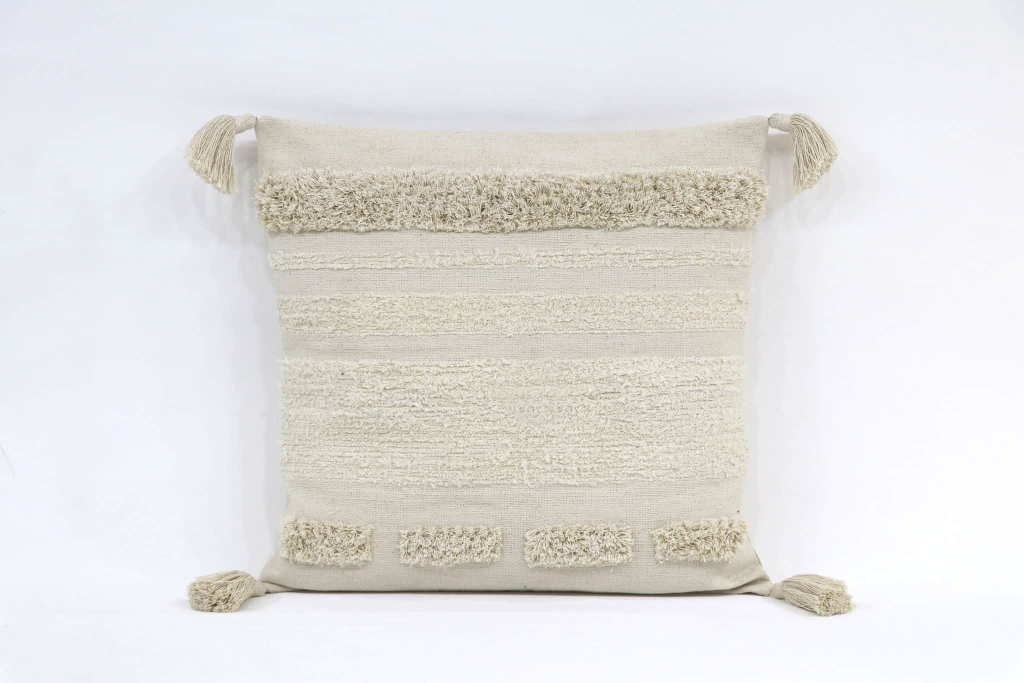 Pynteputetrekk i høy kvalitet håndvevd av resirkulert bomull. Stoffet har en eksklusiv flosstekstur som er slitesterk, men likevel fleksibelt og behagelig. Trendy, likevel tidløst design i naturlig off-white farge. Putetrekket passer godt i en sofa eller lenestol. Ensfarget bakside.