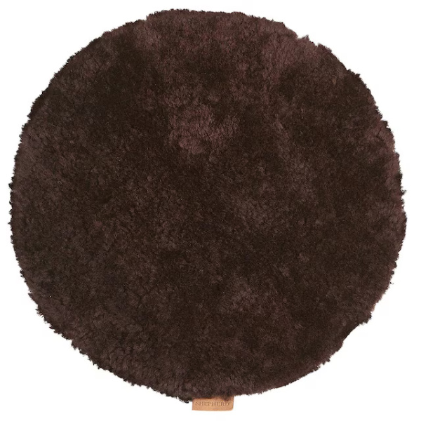 Upolstret rund stolpute i mykt korthåret saueskinn av australsk opprinnelse. Alle saueskinn er naturlige og kan derfor variere i struktur. Underside i ufarget lær.