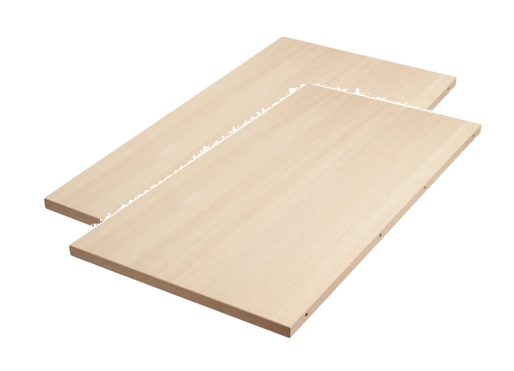 Platene leveres i samme tresort og overflatebehandling som bordet, til heltrebord er det «finer massiv look» platene som passer til.