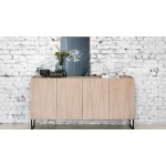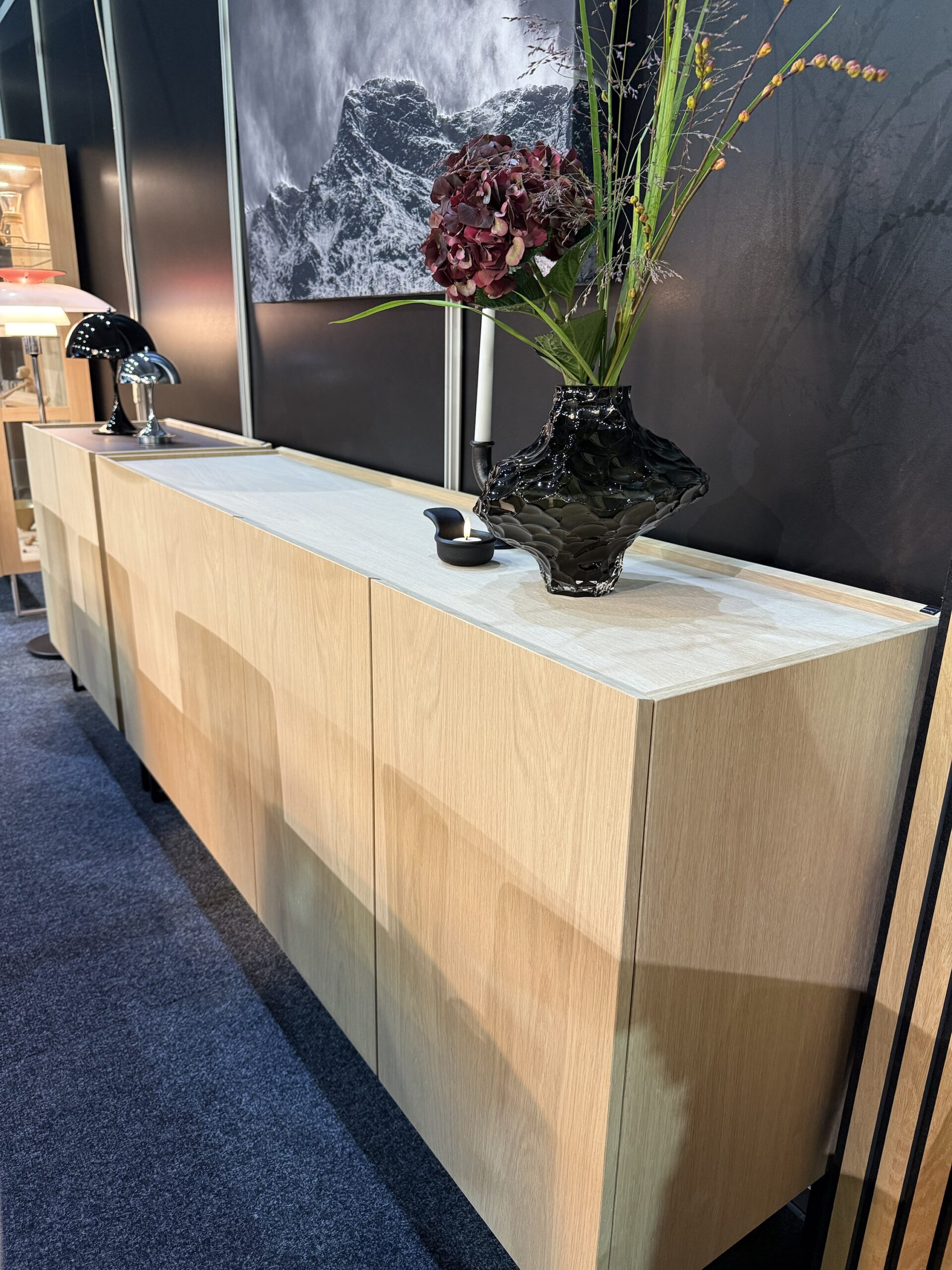 - Skjenken har 4 dører, 3 korte hyller, 1 lang skuffe og 1 lang hylle