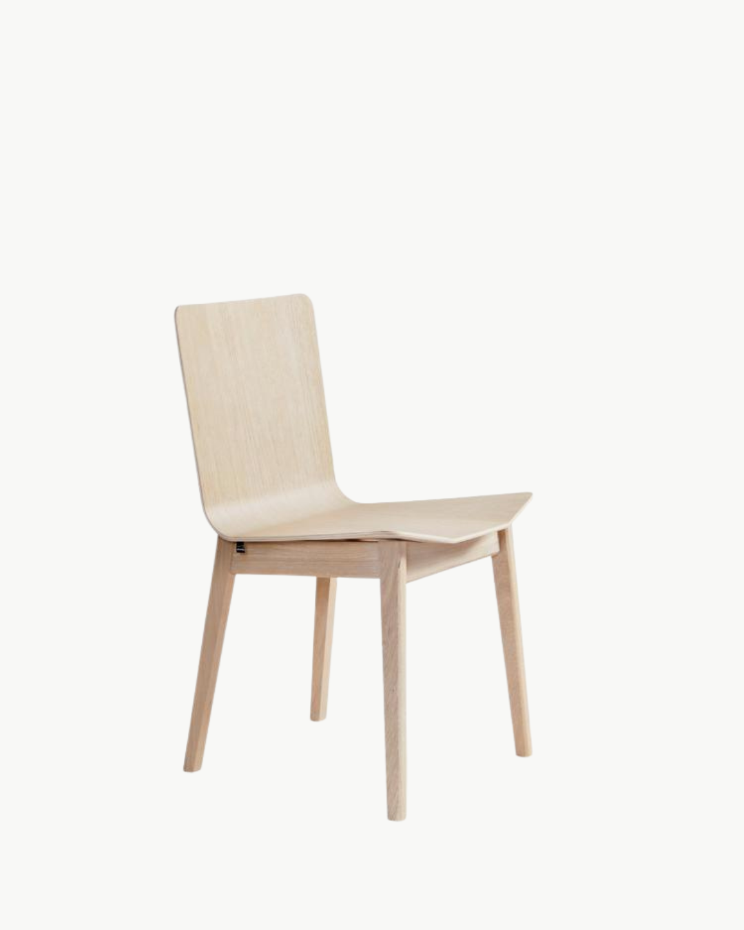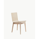 Kombinasjonen av det tynne og kantete skallet og de solide trebena gir stolen en unik silhuett og vitner om fremragende håndverk. Det spesialdesignede skallet har en harmonisk og fleksibel form som sikrer komfort og langvarig appell.