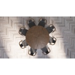 Thomas Bentzens bærbare sidebord er treffende kalt ‘Don’t Leave Me’. Forkortet til DLM, og har et praktisk håndtak som gjør det mulig å bære metallbordet fra rom til rom. Selv om det har en lett og bærbar struktur, gir de tre skrå beina stor stabilitet. DLM og DLM XL, som er tilgjengelige i to størrelser, gir funksjonelle alternativer til tradisjonelle salongbord. Passer for innvendig bruk i de fleste hjemme- eller kontormiljøer. Materiale: Pulverlakkert stål Mål: Ø38 X H58