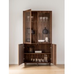 • Klassisk vitrineskap med 2-glassdører, 2-tredører, 2 glasshyller, 1  lang hylle og 2 LED lamper.
