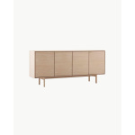 Skjenk SM 306 har en enkel og klassisk konstruksjon som passer perfekt inn i et stilrent interiør. Skjenken består av to romslige skuffer og to hyller bak to av dørene. De to andre dørene skjuler et dobbelt skap med en bred hylle – ideell for større fat, serveringsboller og annet kjøkkenutstyr.