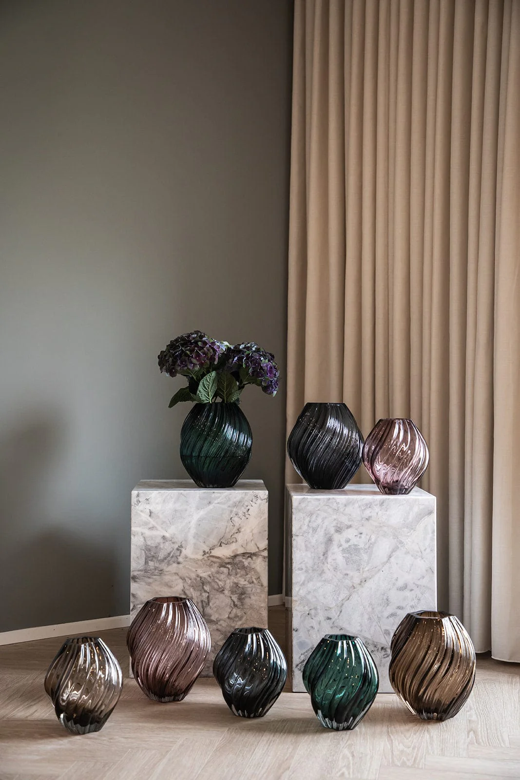 The shape of the Nuage vases made its first appearance in the oeuvre of Ronan and Erwan Bouroullec in 2002. Reminiscent of a cloud, it was originally produced as a plastic shelf module that can be grouped into clusters or large-scale configurations. Eight tubular cavities pierce the flat surfaces of the modular element while also defining the form's outer contours. Over the years, the Bouroullec brothers have varied this shape and repeatedly incorporated it in their graphic work. For the Nuage vase, the designers executed the cloud motif in extruded aluminium profiles of varying lengths. The cavities in the basic form are now positioned upright, dividing the vase into eight individual tubes that can be used for the artful arrangement of flowers and grasses. The undulating surfaces, with an anodised finish in various colours, produce an attractive interplay of light and shadow. Thanks to their precise outer contours, the vases can be fitted together to create entire 'cloud formations'. Material: anodised aluminium, rubber stoppers