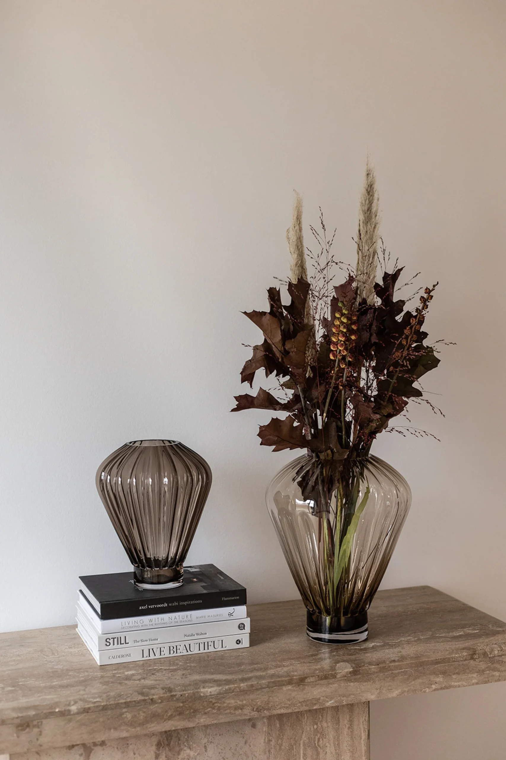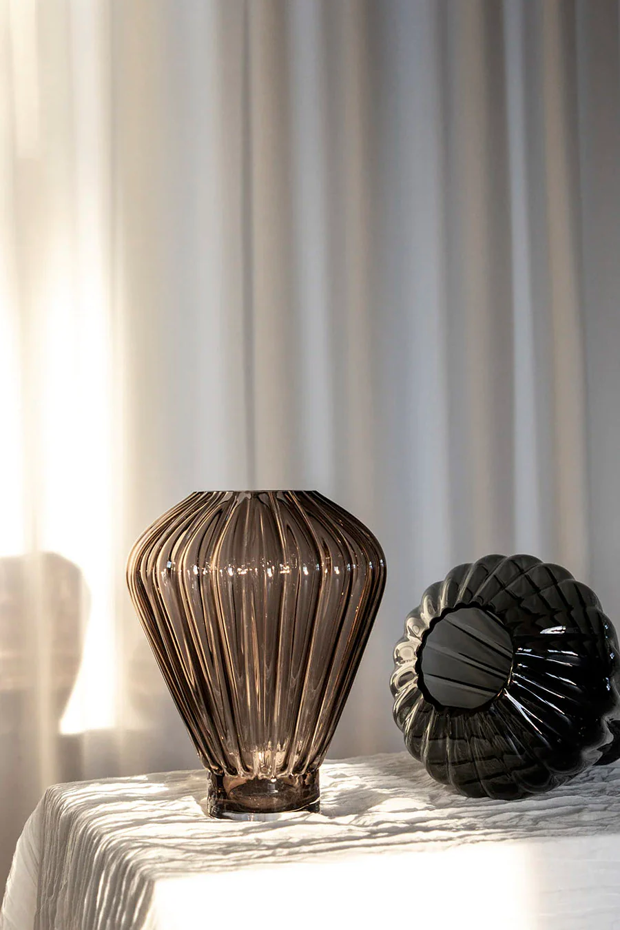 Med sitt geometriske formspråk og moderne mønster er Evelyn Vase designet for å være et sentralt designelement i hjemmet hele året – uavhengig av blomstertrender og årstider. Evelyn Vase er produsert i Europa og er munnblåst. Munnblåsingsteknikken er et gammelt og rikt håndverk, som har gått videre i generasjoner. Vi jobber veldig tett med produksjonen vår for å kombinere våre moderne design med deres tradisjonelle ferdigheter. Vi omfavner den unike produksjonsprosessen og egenskapene til denne spesielle produksjonen – dette betyr at hvert produkt er unikt. Luftbobler og andre ufullkommenheter kan oppstå som et resultat av produksjonen, som vi elsker og setter pris på.