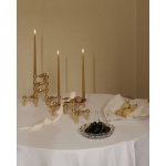 Rengjøring og vedlikehold: Dette spesielle stykket er laget av massiv messing og vil naturlig utvikle en patina over tid. Siden produktet ikke er belagt, begynner patinaen så snart det er produsert. Derfor kan STOFF Nagel-produktet ditt ha spor av patina selv når det er helt nytt. Du kan enkelt fjerne stearinlysdrypp ved å legge skålen i varmt vann til voksen mykner. For å fjerne patina, plasser skålen i en løsning av varmt vann med 1 ss sitronsyre per ½ liter vann og en dråpe vaskemiddel. La virke i 10 minutter. Tørk av med en tørr klut. Hvis det fortsatt viser tegn til patina, bruk messingpolish og tørk av med en tørr klut for å få tilbake det skinnende utseendet.