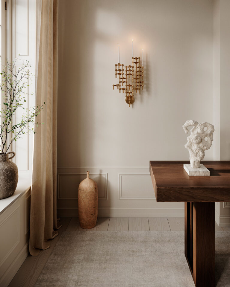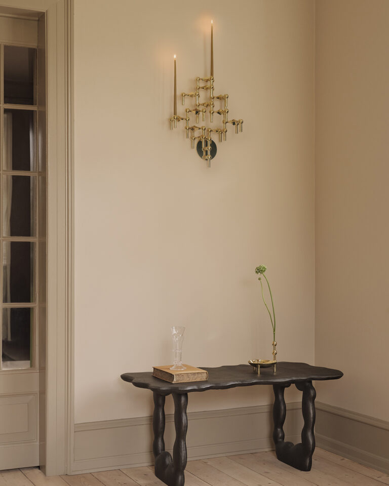 Bygg opp skulpturen din fra bunnen av vegghengeren med din samling av lysestakere. Vi anbefaler å plassere maksimalt 25 og minimum 5 lysestakere på vegghengeren når du lager veggskulpturen din for å oppnå det beste visuelle grunnlaget.
