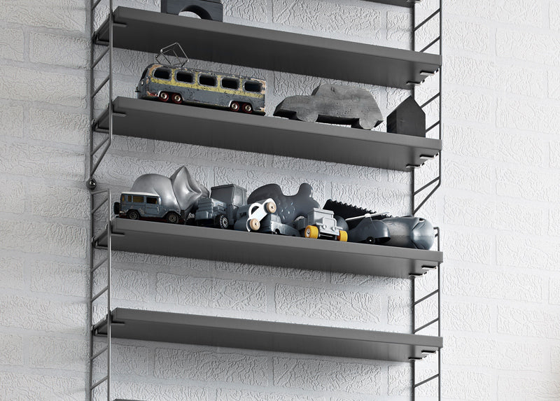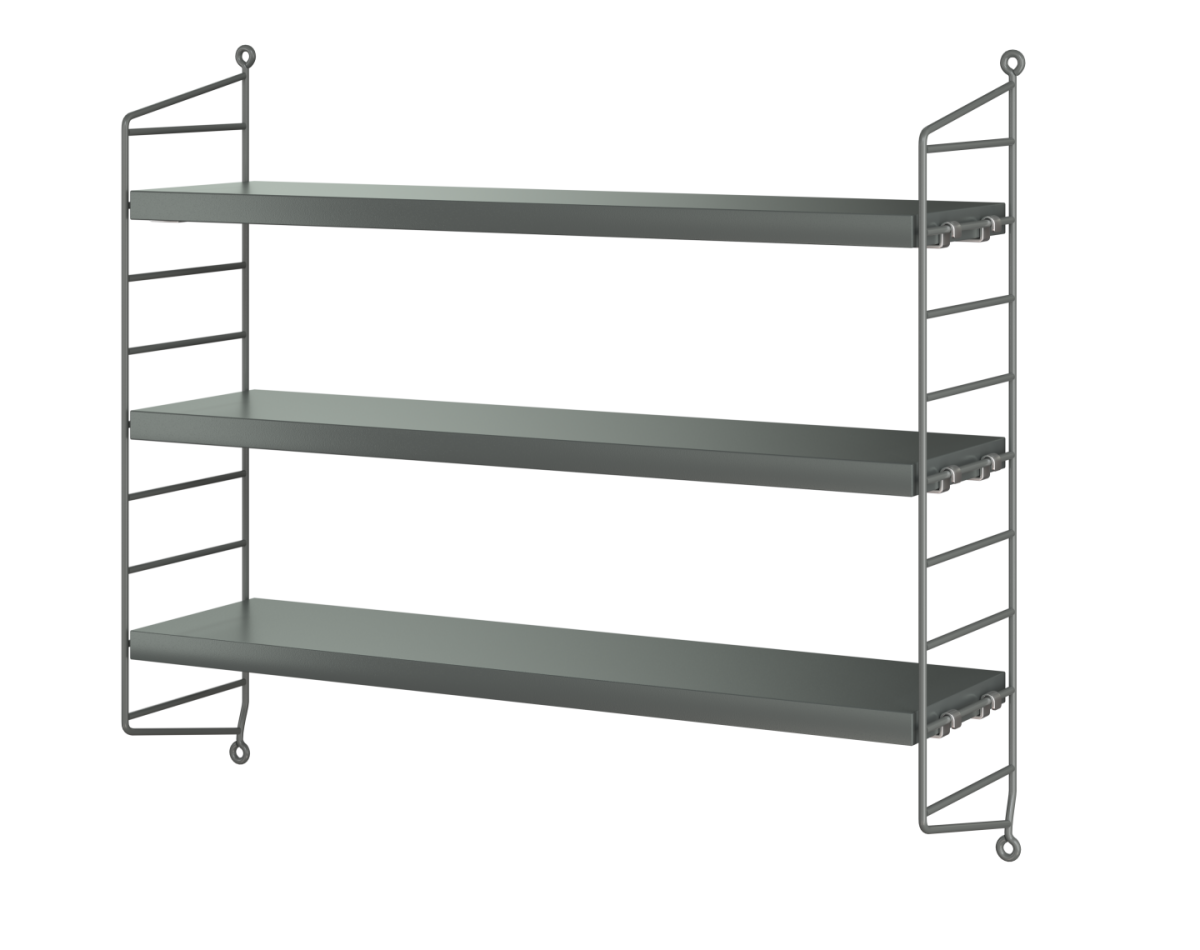 Nils Strinning’s ikoniske hylle system string®, ble designet i 1949. String’s hyllesystem er funksjonelt om veggen er liten eller stor, sokkelen er lett å montere, hyllene kan raskt omplasseres, den er stabil og kan utvides i alle retninger. Hyllene og sidepanelene fås i flere farger, hvilket gjør at String har mange forskjellige uttrykk. Alt dette, sammen med det tidløse, minimalistiske design gjør, at String stadig tiltrekker oppmerksomhet den dag i dag.