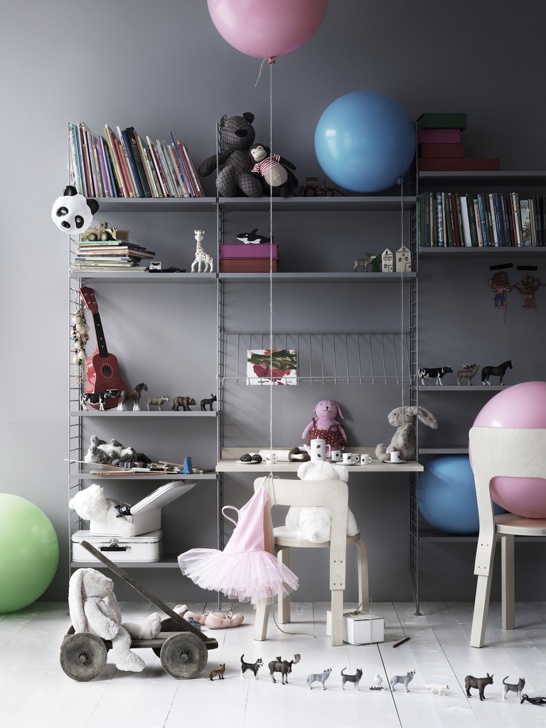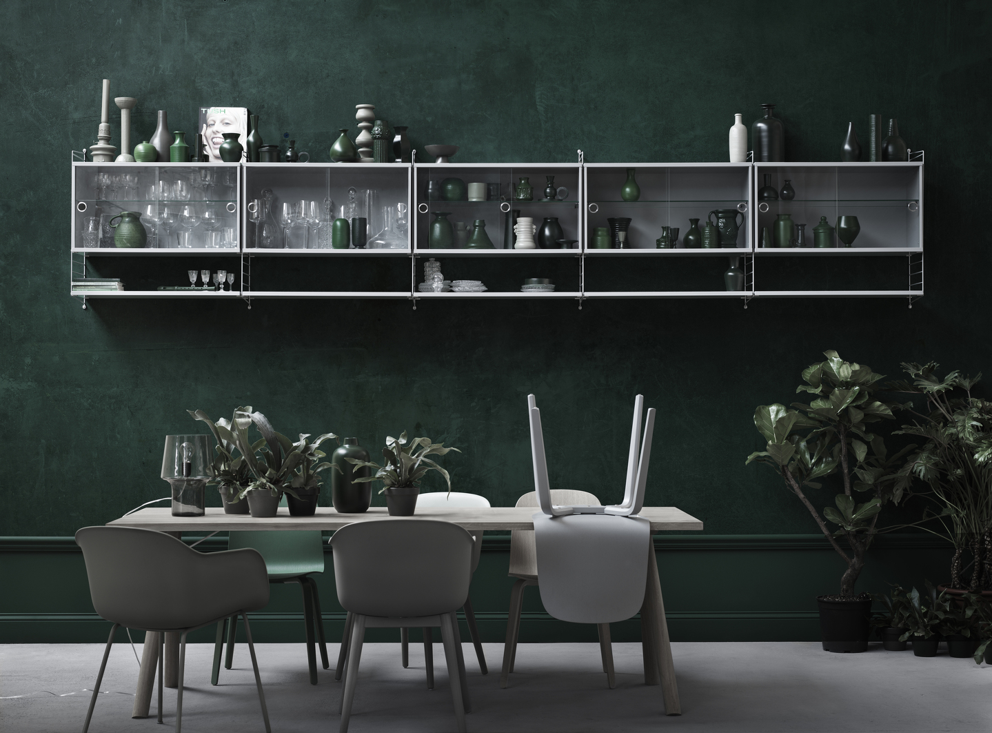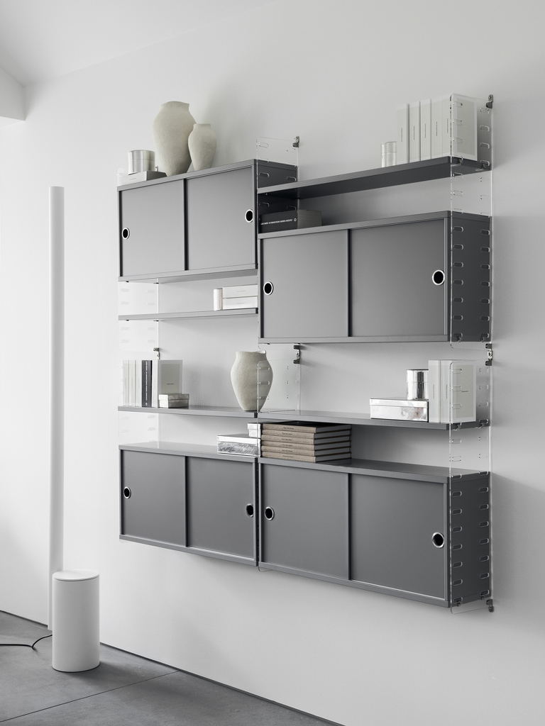 Praktisk hylle til alle tenkbare bruk, kan serie festes for å opprettholde dens lette å rene design, eller festes mere lekent ved å bruke flere hyller sammen horisontalt. Nils Strinning's ikoniske hylle system string®, ble designet i 1949. String's hyllesystem er funksjonelt om veggen er liten eller stor, sokkelen er lett å montere, hyllene kan raskt omplasseres, den er stabil og kan utvides i alle retninger. Hyllene og sidepanelene fås i flere farger, hvilket gjør at String har mange forskjellige uttrykk. Alt dette, sammen med det tidløse, minimalistiske design gjør, at String stadig tiltrekker oppmerksomhet den dag i dag.