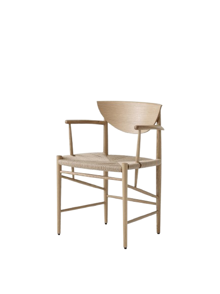 Den tegnede stolen fra 1956 av Hvidt & Mølgaard skiller seg ut som et definitivt stykke dansk design. Bygget på tradisjonelle håndverksteknikker og laget av organiske materialer, bringer den en følelse av sunn ærlighet til ethvert rom.