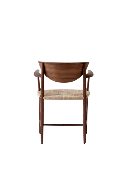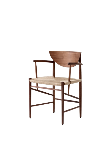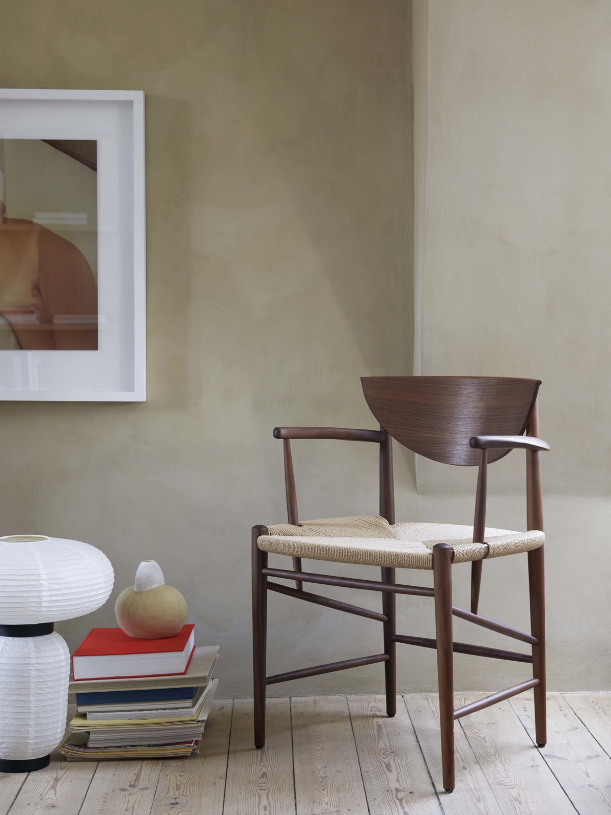 Den tegnede stolen fra 1956 av Hvidt & Mølgaard skiller seg ut som et definitivt stykke dansk design. Bygget på tradisjonelle håndverksteknikker og laget av organiske materialer, bringer den en følelse av sunn ærlighet til ethvert rom.