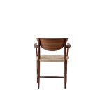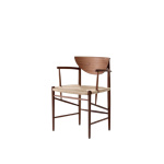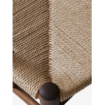 Laget av dreid og frest heltre med formpresset ryggstøtte. Setet er håndvevd av mer enn 100 meter naturlig papirsnor.