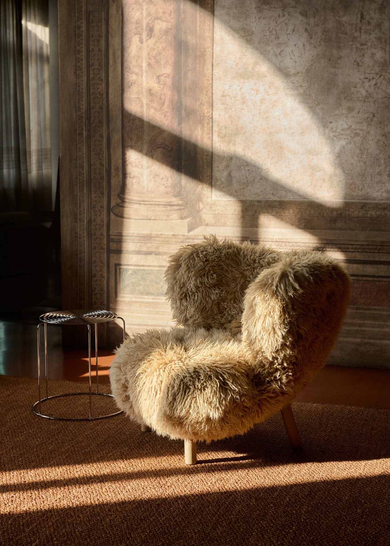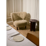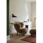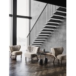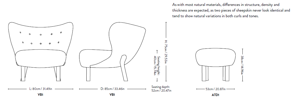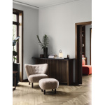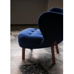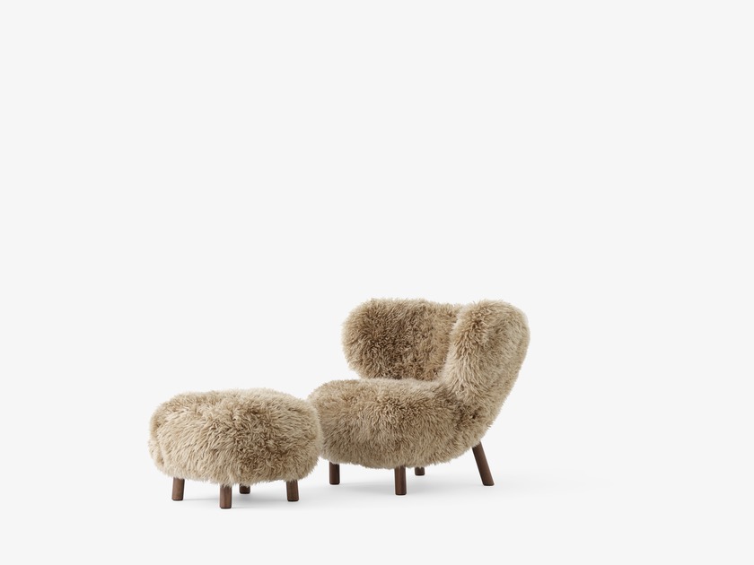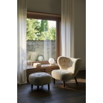 Komforten fullendes med puffen, designet som et naturlig supplement til lenestolen. Puffen deler samme formspråk og håndverksmessige detaljer, med solide ben i eik eller valnøtt og trekk i de samme eksklusive tekstilene som stolen. Enten den brukes som fotskammel til lenestolen eller som en liten loungestol alene, er målet det samme – avslapning med stil.