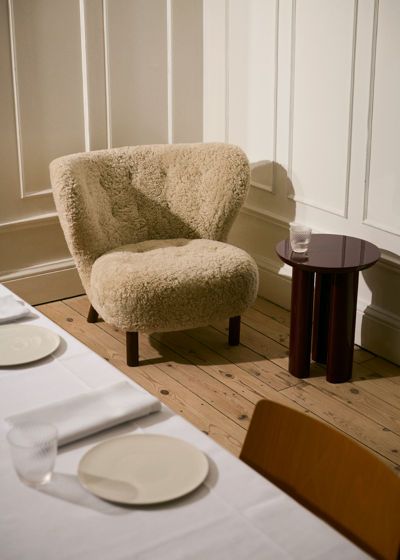 Navnet Lille Petra kommer fra Boesens svigermor Petra – en liten kvinne med stor personlighet. Stolen gjenspeiler nettopp dette: et kompakt møbel med et varmt og innbydende uttrykk som umiddelbart skaper en følelse av hygge i rommet.