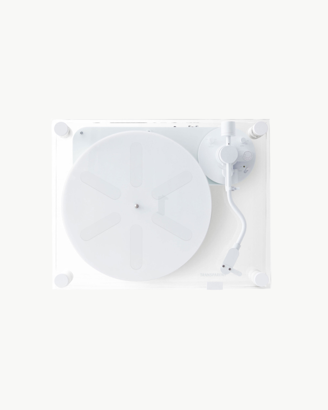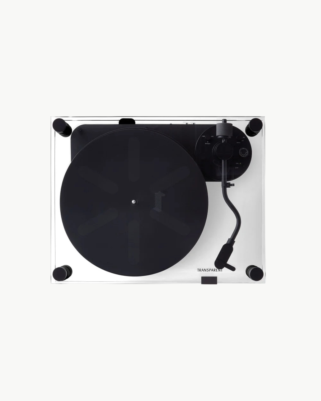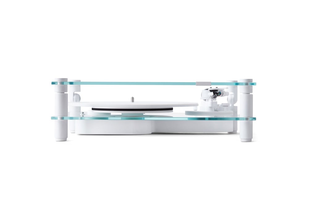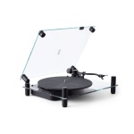 Transparent Turntable er en nytolkning av en klassisk vinylplatespiller, laget for moderne hjem og stadig utviklende teknologi. Den er nøye håndlaget i aluminium og herdet glass. Systemet er beltedrevet, med innebygd phono-stage og en ferdigmontert pickup fra danske Ortofon.