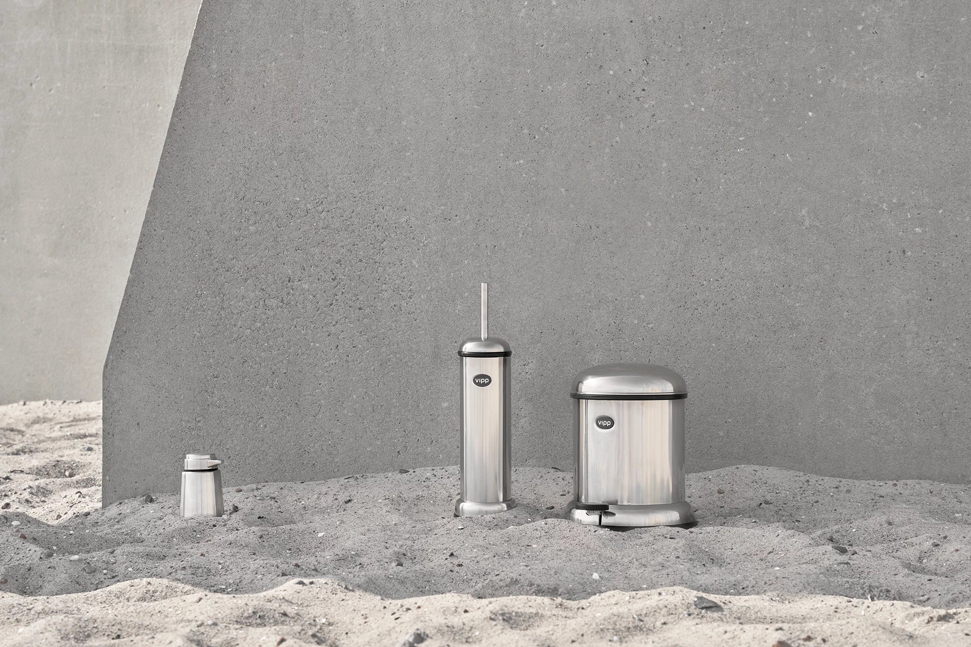 Vipp toalettbørste er en raffinert nødvendighet på baderommet. En silikonring på toppen av toalettbørsten gir lufttett lukking, mens den ekstra vekten på basen sikrer god stabilitet.