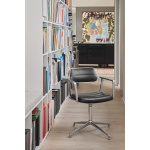 Vipp introduserer en ny stol i Swivel-serien ved å kombinere komforten til Vipp453+-stolen med firbeinsbasen til Vipp452-stolen. Den ekstra polstrede versjonen av den originale Swivel-stolen er beregnet på både boliger og konferanserom, der folk sitter i lengre perioder, og tilbyr en større ryggstøtte og et svært komfortabelt sete.