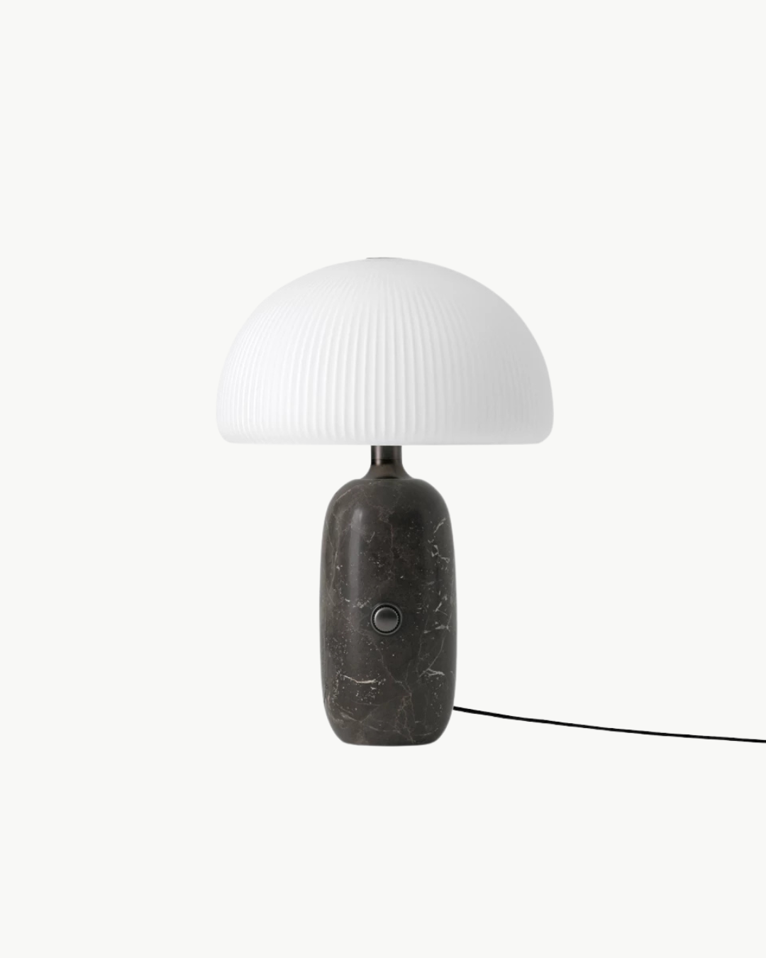 Bordlampa fra Vipp er perfekt for å gi dekorativ belysning i for eksempel stua eller soverommet. En holdbar LED-pære er skjult under en skjerm av trelags opalglass, og gir et stemningsfylt lys. Sylinderfoten har grå eller hvite marmordetaljer samt en dimmer, bryter og en stoffbekledd ledning.