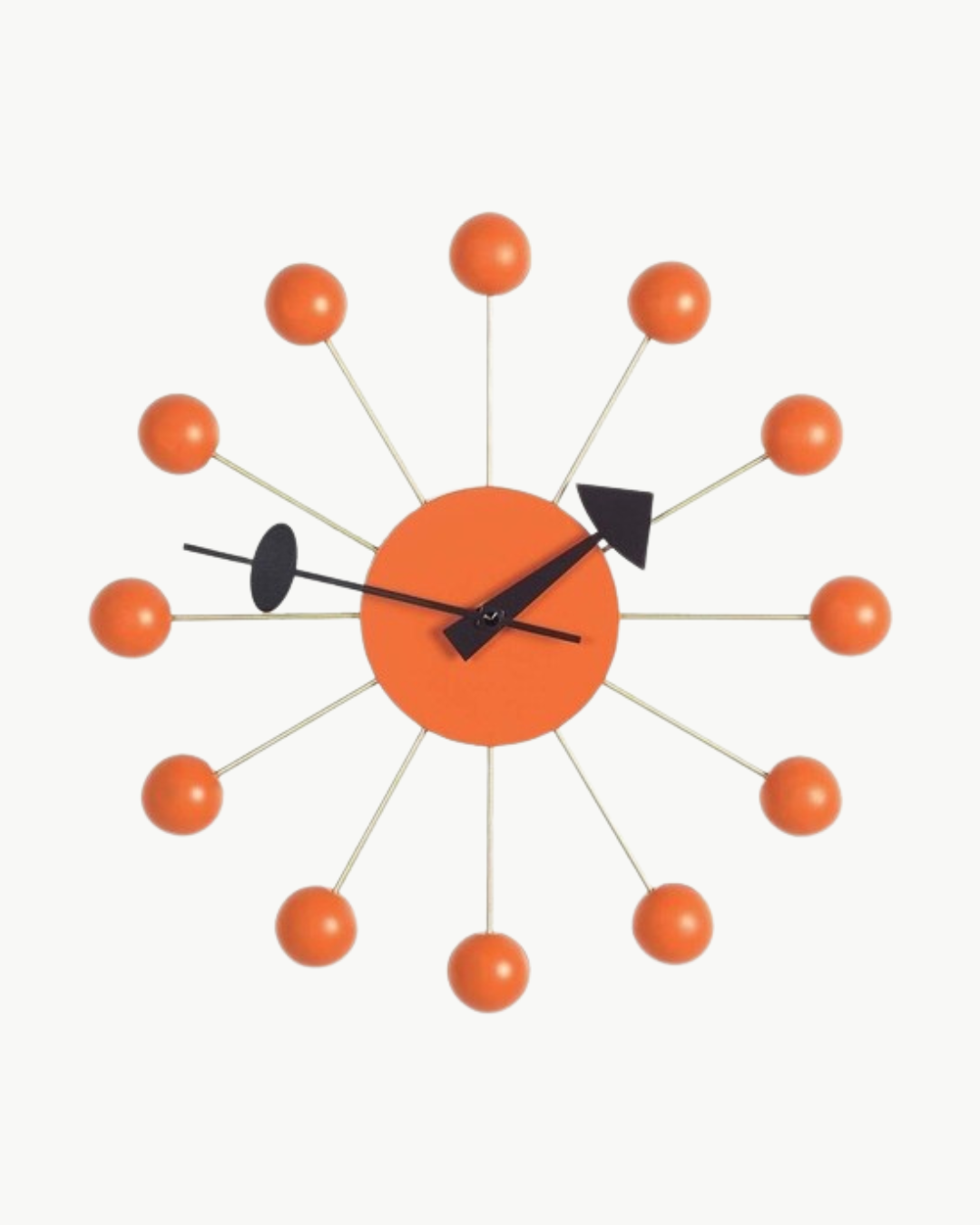Troen på fremskritt og økonomisk vekst var sentral elementer i den amerikanske livsstilen rundt 1950-tallet. med et mål om å bringe moderne design inn i amerikanske hjem, George Nelson tok et bredt utvalg av hverdags objekter; lamper, klokker og andre gjenstander. opp til 1970-tallet skapte Nelson kontoret mange forskjellige elementer, blant annet 'The Bubble Lamps' og 'The Ball Clock,' som begge ble ikoniske for moderne design. 'The Wall Clock' er tilgjengelig i forskjellige former og materialer. Utstyrt med quarts bevegelser i høy kvalitet, tilbyr 'The Wall Clock' et forfriskende alternativ til tradisjonelle klokker. George nelson 1948-1960 Mål: Ø33