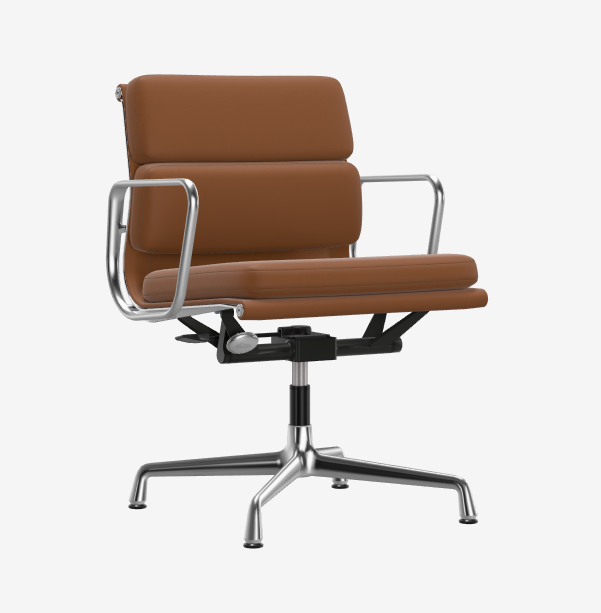 Ryggstøtte og sete: påsydde puter med polstring av polyuretanskum og stoff- eller skinntrekk. Sideprofiler og spredere i presstøpt aluminium, med polert eller forkrommet finish eller pulverlakkert i dyp sort.