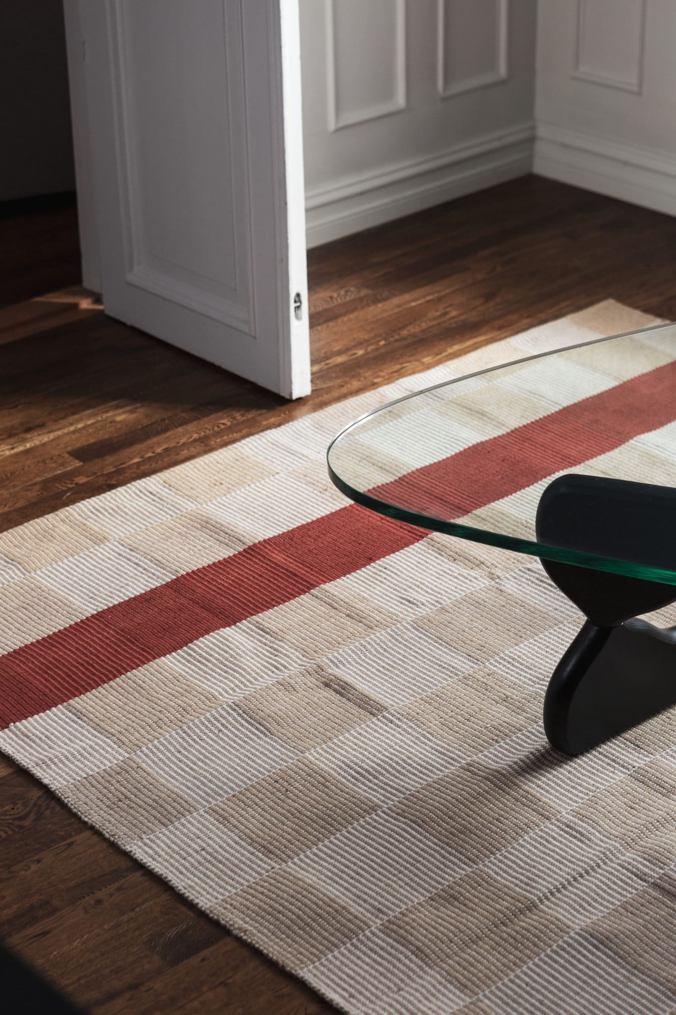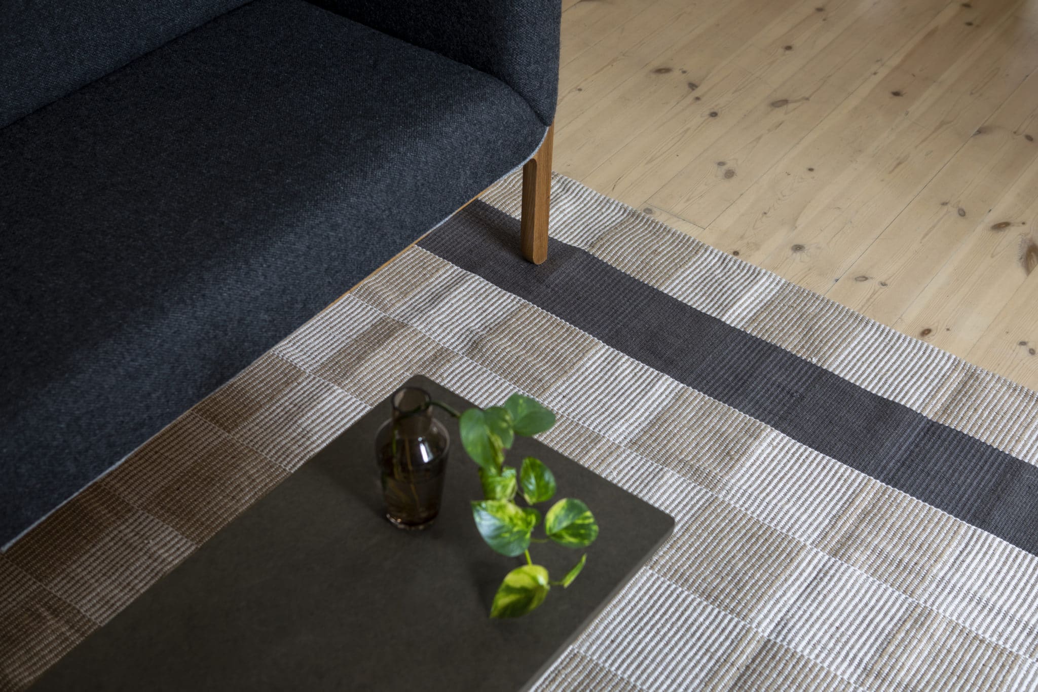 Wafa gulvteppe er et eksklusivt håndvevd teppe i bomull og jute. Tilgjengelig i to varianter: 1) striper i rust og brun og 2) striper i koks.