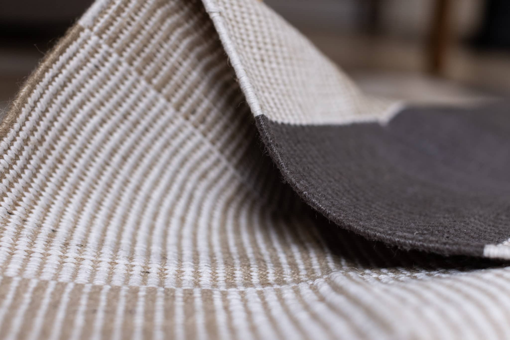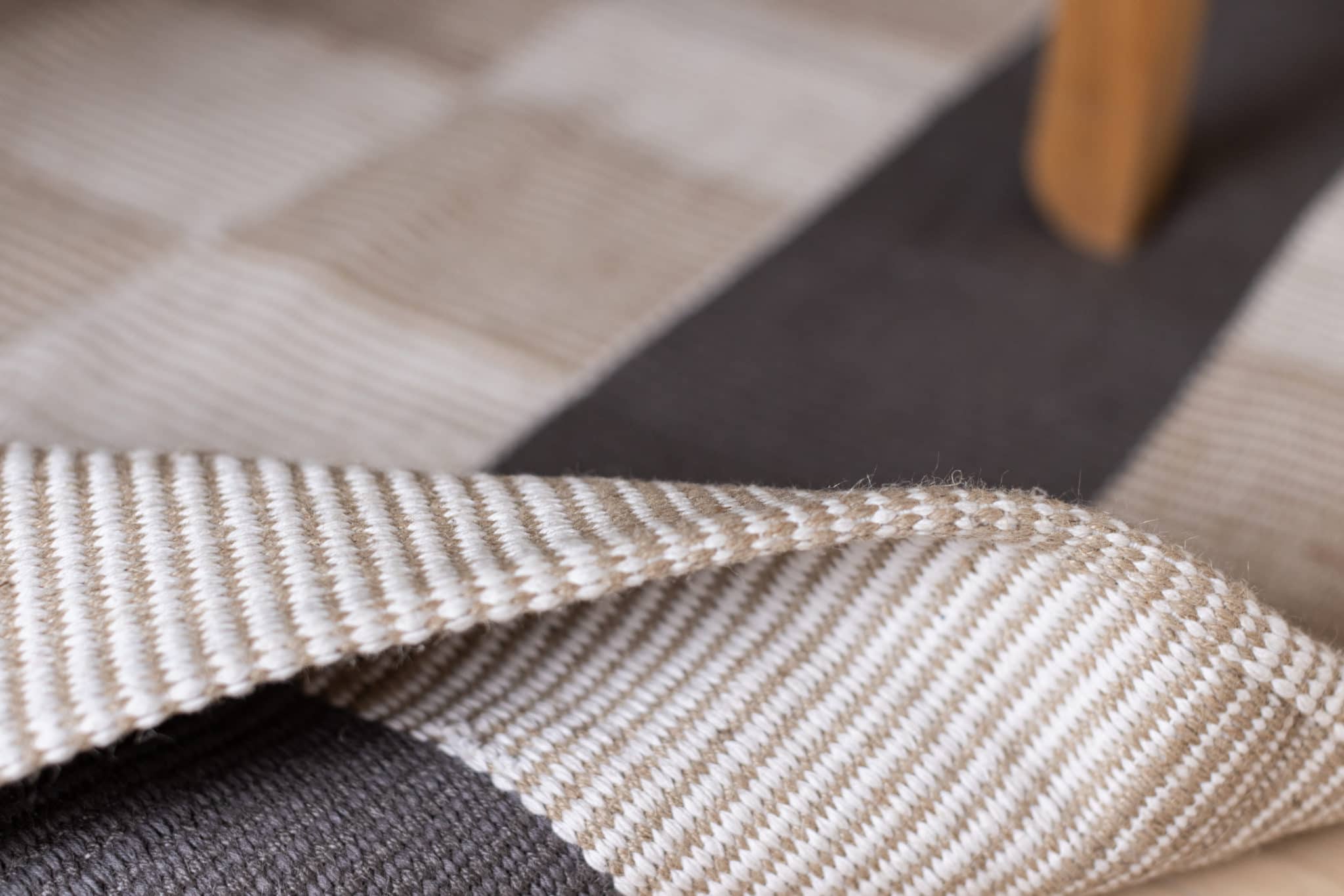 Håndvevd teppe i bomull og jute.